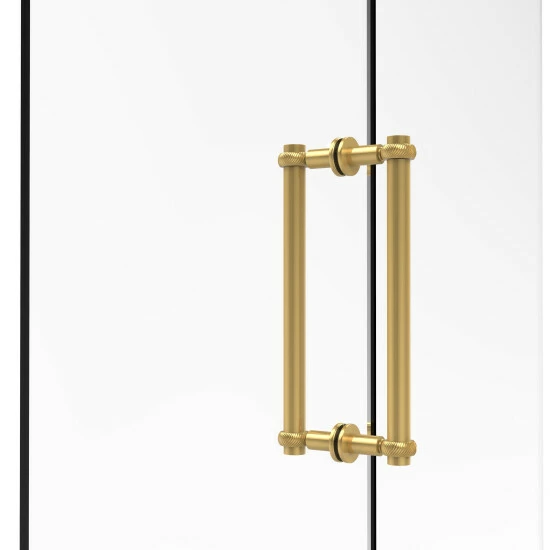 Impress visitors to your bathroom with this brass back-to-back shower door pull. At 12 inches long, its size ensures you can get a good grip, and it has pretty, twisted accents at the top and bottom for extra style. This pull fits in beautifully with a modern or contemporary bathroom decor.
