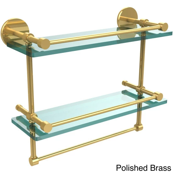 Add a flare of style to your decor with this decorative glass shelf. Shelf can be used anywhere in the home for a great space to store your products. Gallery rail will keep your items secure while the integrated towel bar provides a creative space for your towels. Tempered glass is .375 inches thick and all of the hardware is made of solid brass and finished with the highest quality materials to provide a lifetime of beauty.
