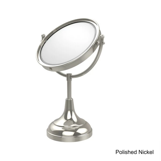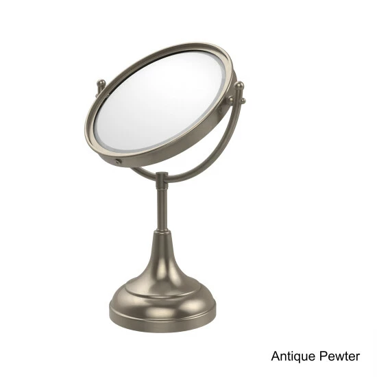 Add this stylish makeup mirror to your bathroom decor for an elegant touch. Makeup and shaving mirror pivots and tilts to allow for complete versatility in viewing angles. Overall height of the mirror is 15 inches. Mirror is made from the finest solid brass materials. 8 Inch double faced mirror features clear magnification on one side.