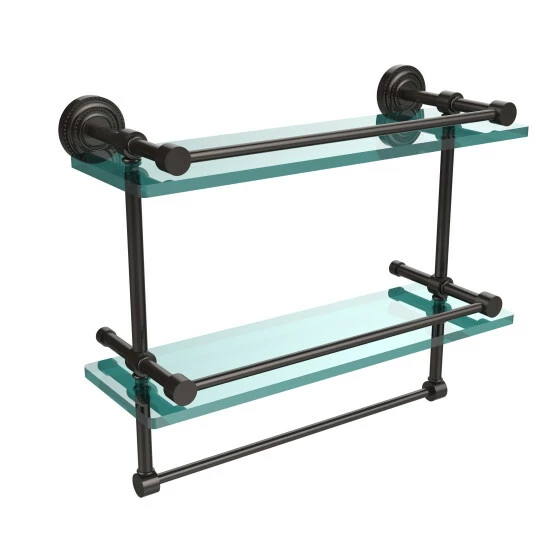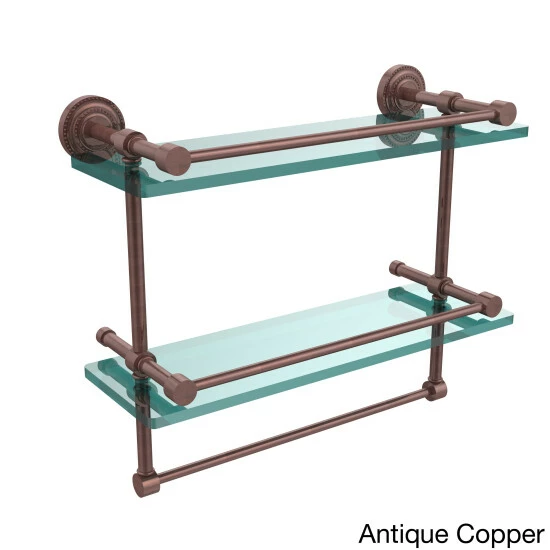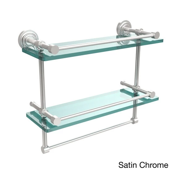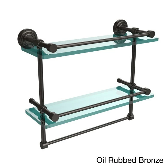 Add a flare of style to your decor with this decorative glass shelf. Shelf can be used anywhere in the home for a great space to store your products. Gallery rail will keep your items secure while the integrated towel bar provides a creative space for your towels. Tempered glass is .375 inches thick and all of the hardware is made of solid brass and finished with the highest quality materials to provide a lifetime of beauty.