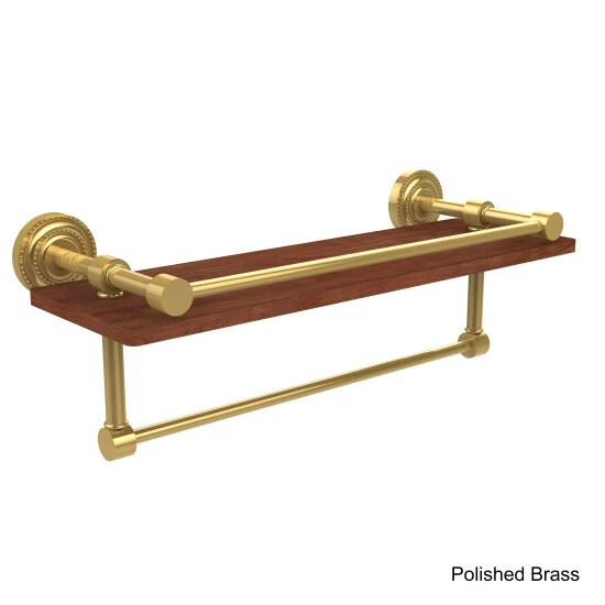 Store bathroom essentials more easily with this lovely shelf and towel rack. The brass and IPE ironwood construction naturally resist the corrosive effects of moisture for long-lasting beauty, and the simple gallery rail around the edge of the shelf helps protect glass jars and other fragile items from falling and breaking.