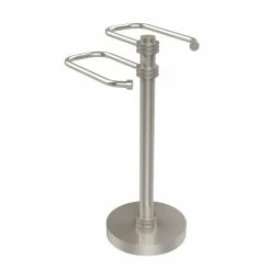 Accessorize your guest bathroom with this attractive free-standing brass towel holder with two arms to hold hand towels. The holder is made with high-quality brass for long-lasting quality.