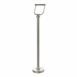 This elegant free standing toilet tissue stand provides a decorative touch to your bathroom. This toilet tissue stands is a great product when wall space is at a premium. Made of the finest solid brass materials with a sturdy base that will keep the stand secure. Designer finishes will provide a lifetime of use.