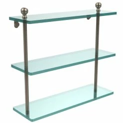 Boost your bathroom’s functionality without cluttering the overall aesthetic with this three-tier glass shelf. Featuring three tempered glass shelves held together by a brass metal frame, this hanging glass shelf helps you make the most of a blank wall. The beveled edging gives this piece an upscale contemporary touch.