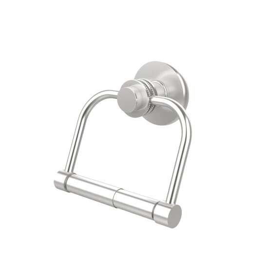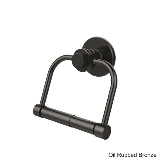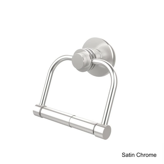 Finish the bathroom with polished finesse with the addition of a toilet tissue holder designed in simple elegance with a single tiered style post and dotted accents. The wall post and two-post hanging stirrup express minimal style with built-in convenience making toilet paper roll changes easy, accessible and fast.