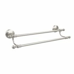 Add a stylish touch to your bathroom decor with this finely crafted double towel bar. This elegant bathroom accessory is created from the finest solid brass materials. High quality lifetime designer finishes are hand polished to perfection.
