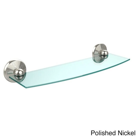 Add contemporary style to any space with theΒ Monte Carlo Collection 18-inch Glass Shelf. This shelf features a tempered glass construction with solid brass mounts that are a available in a variety of finishes.Β