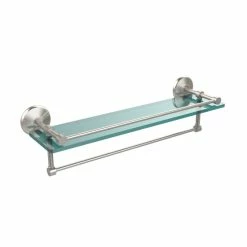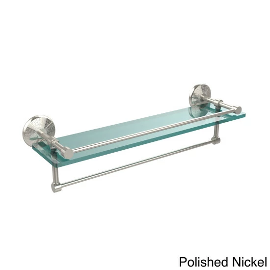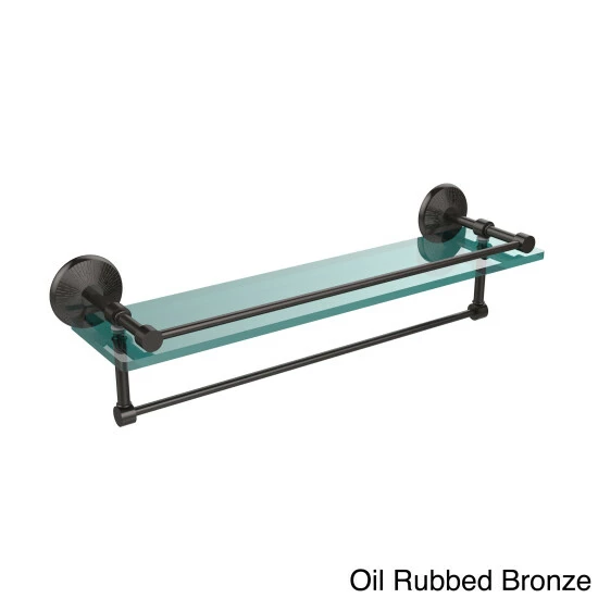 Add a flare of style to your decor with this decorative glass shelf. Shelf can be used anywhere in the home for a great space to store your products. Gallery rail will keep your items secure while the integrated towel bar provides a creative space for your towels. Tempered glass is .375 inches thick and all of the hardware is made of solid brass and finished with the highest quality materials to provide a lifetime of beauty.