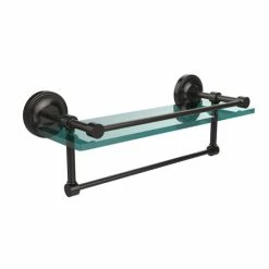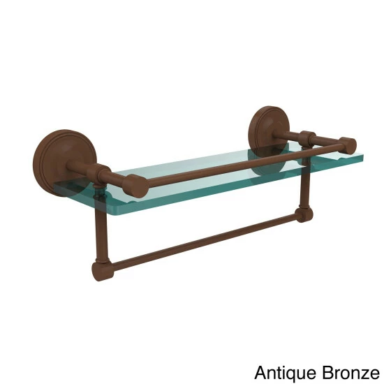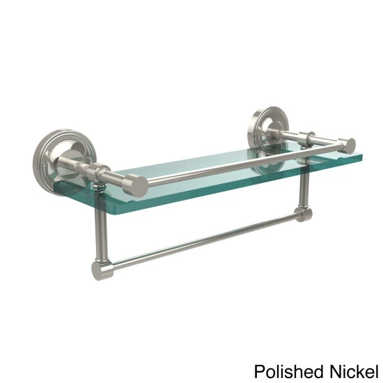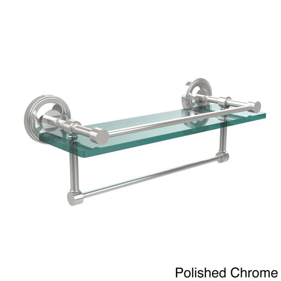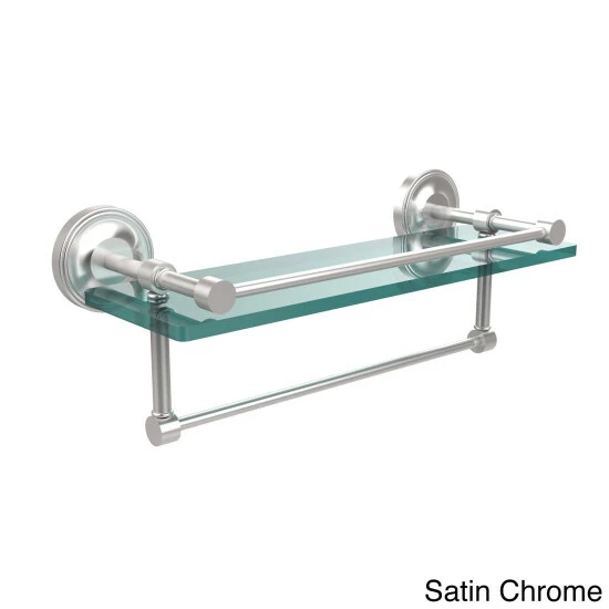 Add a flare of style to your decor with this decorative glass shelf. Shelf can be used anywhere in the home for a great space to store your products. Gallery rail will keep your items secure while the integrated towel bar provides a creative space for your towels. Tempered glass is .375 Inches thick and all of the hardware is made of solid brass and finished with the highest quality materials to provide a lifetime of beauty.