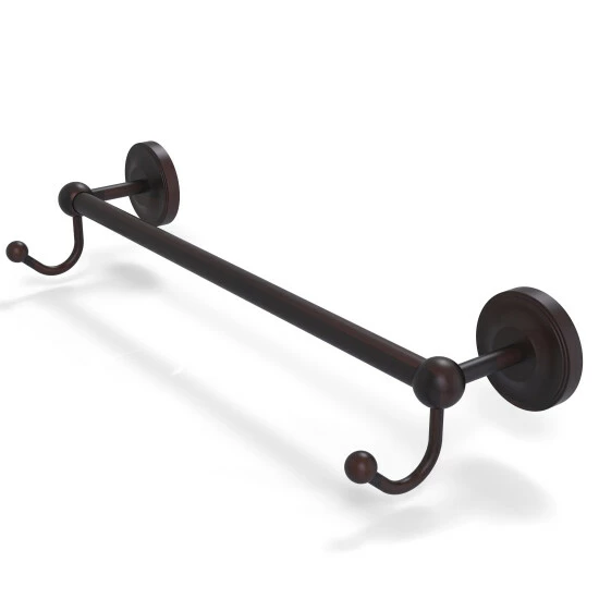 Save space in your bathroom, with this fashionable towel bar with integrated hooks. This brass towel bar is an excellent choice for a modern bathroom. Its simple, yet stylish design, adds a sleek finish to your bathroom. Any of our designer finishes make this bar a perfect fit for any decor style. This bar looks wonderful in any bathroom and it gives a feel of comfort and safety.Its integrated hooks add convenience to this towel bar, as it allows you to also use this accessory for holding your bathrobes or for drying your towels before placing them back on the rod.