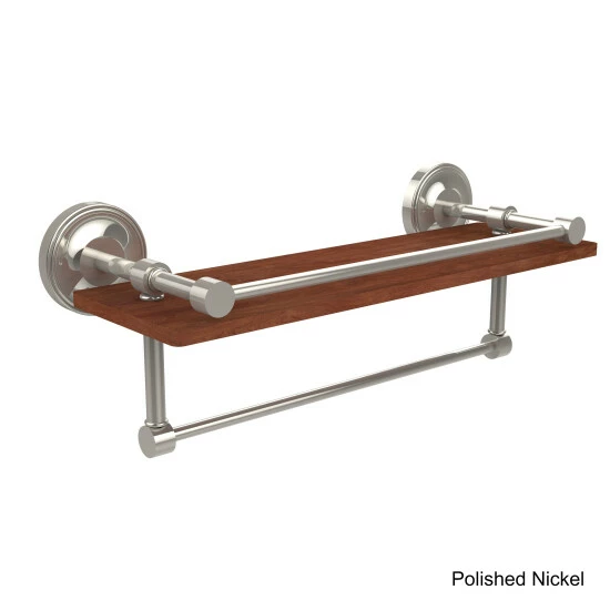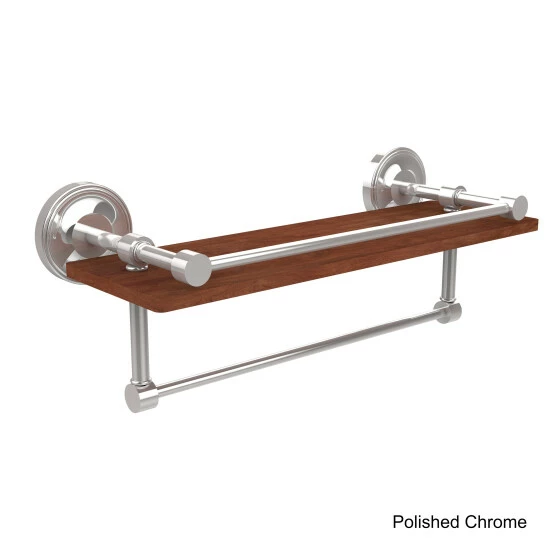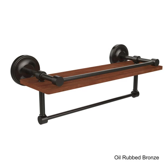 Organize your bathroom necessities with this durable shelf and towel bar from the Allied Brass Collection. Made from solid wood, this shelf is the perfect place to display keepsakes and keep your necessities organized, and the durable rail provides room to hang guest towels. The shelf comes with all the hardware needed for a quick installation.