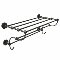 Add a stylish touch to your bathroom with this elegant train rack towel shelf. Our versatile design makes efficient use of your space. This elegant train rack is created from the finest solid brass materials. Our high quality designer finishes are hand polished to perfection.