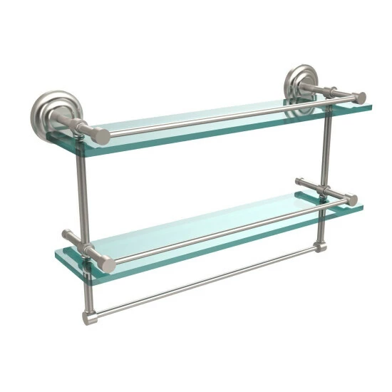 Perfect for use in any room of the home, this glass shelf is useful as well as decorative. The gallery rail will keep your items secure while the integrated towel bar provides a creative space for your towels. Tempered glass is .375 Inches thick and all of the hardware is made of solid brass and finished with the highest quality materials to provide a lifetime of beauty.