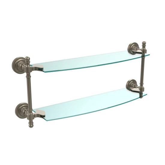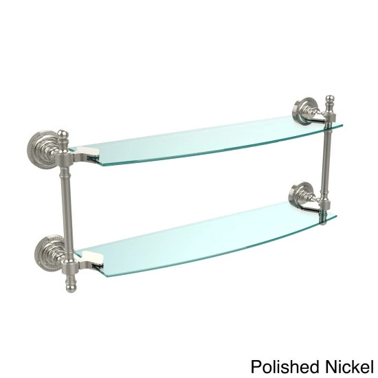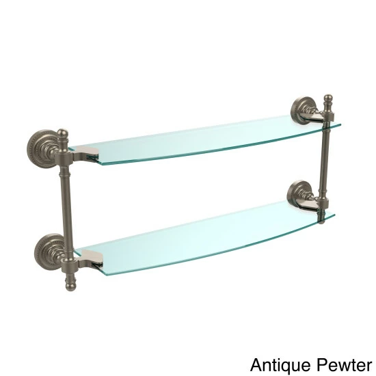 Add space and organization to your bathroom with this simple, contemporary style glass shelf. Featuring tempered, beveled-edged glass and solid brass hardware this shelf is crafted for durability, strength and style. One of the many coordinating accessories in the allied brass collection of products, this subtle glass shelf is the perfect complement to your bathroom decor.
