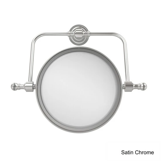Complete your bathroom needs with this wall mounted swivel make-up mirror that is available in a range of finishes to easily pair with any existing decor. Add this stylish wall mounted makeup mirror to your bathroom decor for an elegant touch. Makeup and shaving mirror pivots and tilts to allow for complete versatility in viewing angles. Mirror is made from the finest solid brass materials. 8 inch double faced mirror features clear magnification on one side.