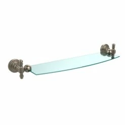 Add a flare of style to your decor with this decorative glass shelf. Shelf can be used anywhere in the home for a great space to store your products. Glass is .25 inch thick and all of the hardware is made of solid brass and finished with the highest quality materials to provide a lifetime of beauty.