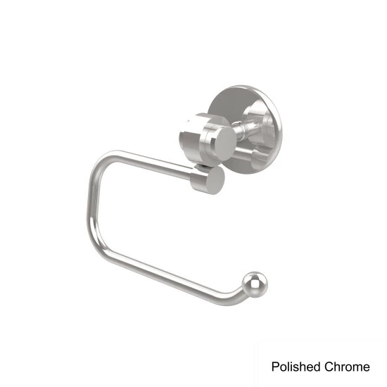 Complete your bathroom needs with this toilet tissue holder that is available in a range of finishes to easily pair with any existing decor. The contemporary motif from this elegant collection has timeless appeal. European Style Toilet Tissue Holder is constructed of solid brass and completed with a lifetime decorative finish. Euro style hook makes changing the roll quick and easy.