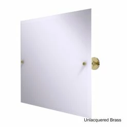Modernize your bathroom when hanging this frameless, landscape tilt mirror featuring a beveled edge. This rectangular-shaped bathroom mirror features solid brass hardware for lasting beauty.
