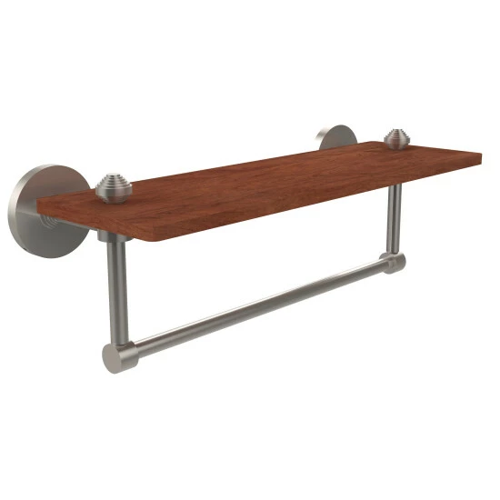 Organize your bathroom with this space-saving South Beach Collection wall shelf. This shelf features a towel bar for hanging your towels conveniently and an ironwood and brass construction for reliable durability.