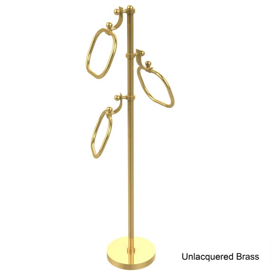 This classic towel stand is an elegant and functional addition to your bathroom d.cor. Provides a luxurious place to have your towels available wherever they are needed. Can be placed near the bath, shower, hot tub or any place where a towel is needed. Towel Stand is 49 inches high giving plenty of clearance for bath towels. Sturdy base keeps stand from tipping while the solid brass construction is guaranteed not to rust. Our finest materials are used to provide a lifetime decorative finish to provide years of use.