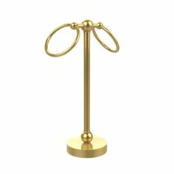 Save space and enhance your bathroom with this dual ring towel holder. This functional piece saves drawer and cabinet space while keeping two guest towels ready for use next to your sink. The classic design is available in a variety of finishes to complement your bathroom design.