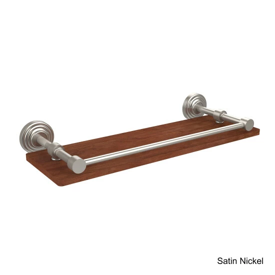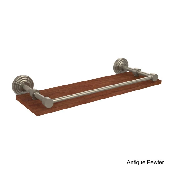 Organize and decorate a powder room with this lovely ironwood shelf with a brass gallery rail. Use the shelf to hold frequently used toiletry items, or make it an accent piece by mounting a bowl of potpourri or your favorite figurines.