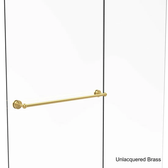 Hang towels in style with this easy-to-install brass shower door towel bar. Available in a variety of finishes, this bar is designed to accent your existing bathroom decor.