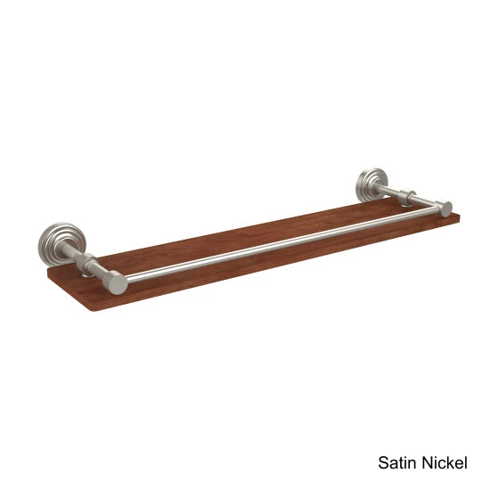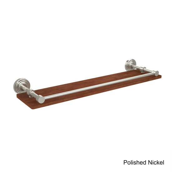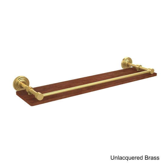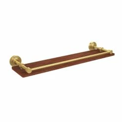 Complement your interior decor with the classical sophistication and modern functionality of this ipe ironwood shelf. This elegant piece features durable, solid wood construction and refined styling that suits traditional, transitional, and contemporary decorative styles. The solid brass gallery rail keeps shampoo, toiletries and other items neatly in place while providing reliable support, and the included hardware includes the necessary equipment for a stable wall mount.